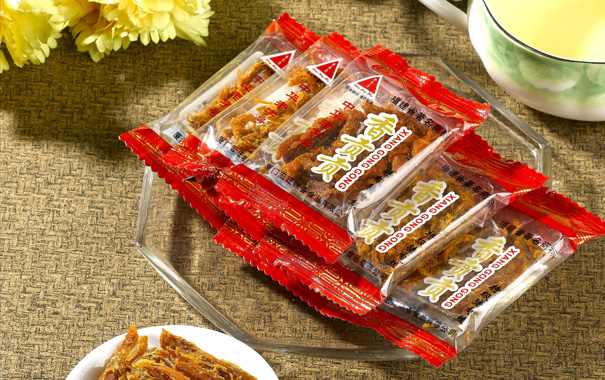 产品特点:呈现黄褐色,油润光泽均匀,呈自然的肌肉纤维条状;香味浓郁鲜美,甜咸适中,嚼而不柴,回味余香悠长。选用腿肉中粗肌肉纤维肉作原料,配以天然香料,低温焖煮后纯手工撕制成型,用天然植物油烹炒后红外线烤制而成,是旅游度假、休闲娱乐、朋友聚餐下酒的理想食品。